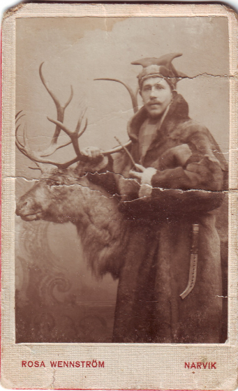 Det finns vykort framställda av Rosa Wennström från Narvik. Nedan är ett vykort på ett “Lappelejer”.