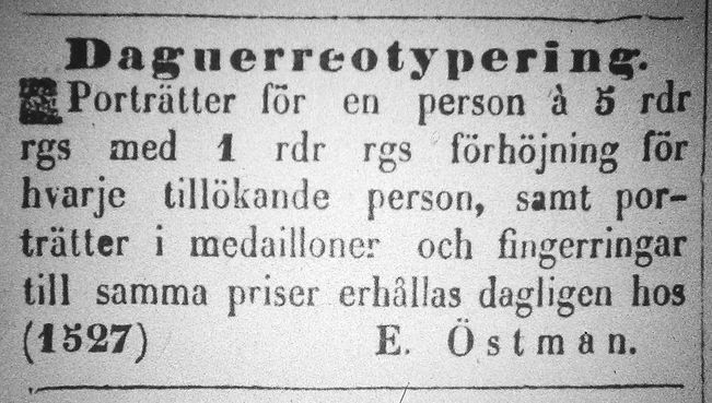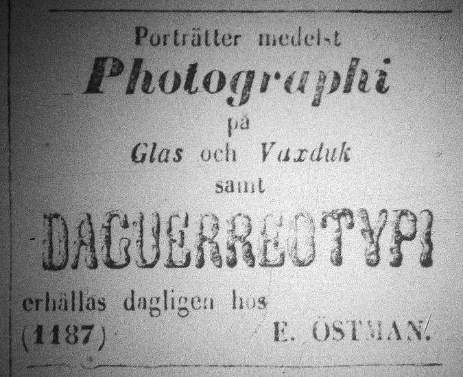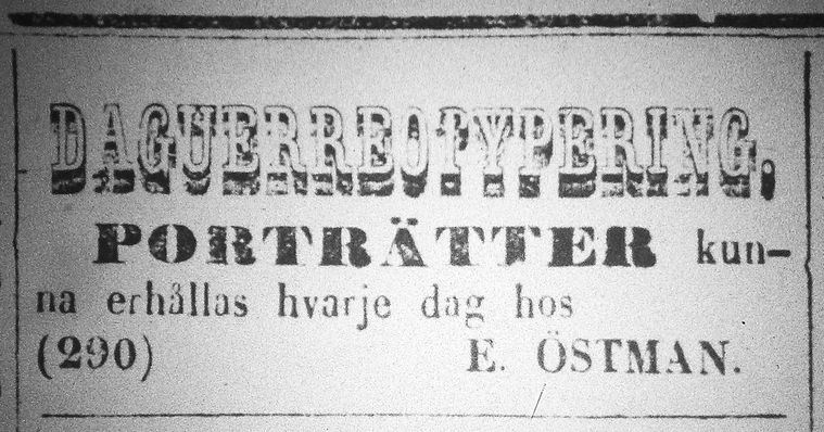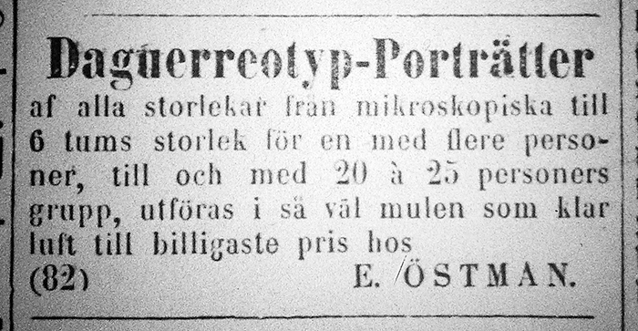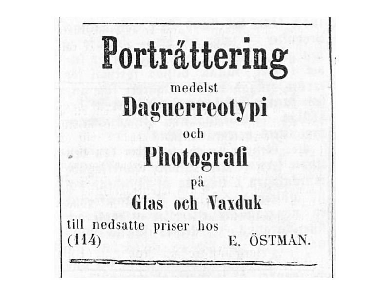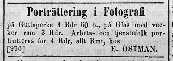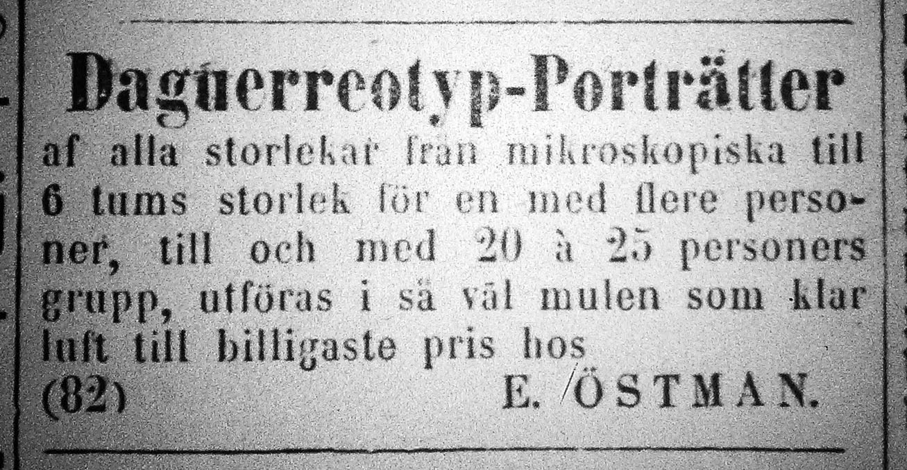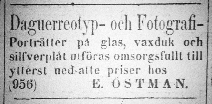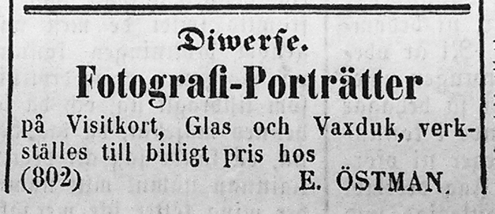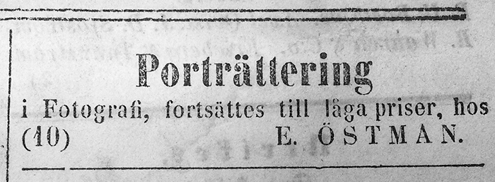 E. Östman annons i Norrlandsposten den 18 februari 1856.