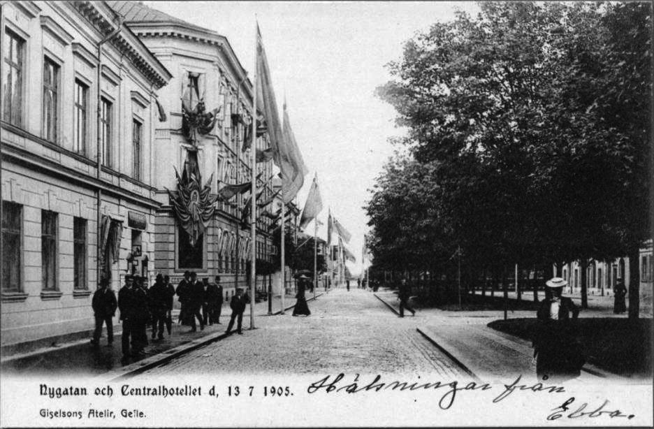 Vykort “Nygatan och Centralhotellet”, Giselsons Atelier, Gävle, 1905.