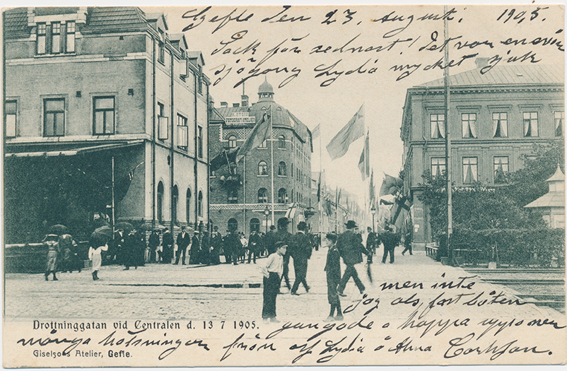 Vykort “Drottninggatan och Centralen”, Giselsons Atelier, Gävle, 1905.